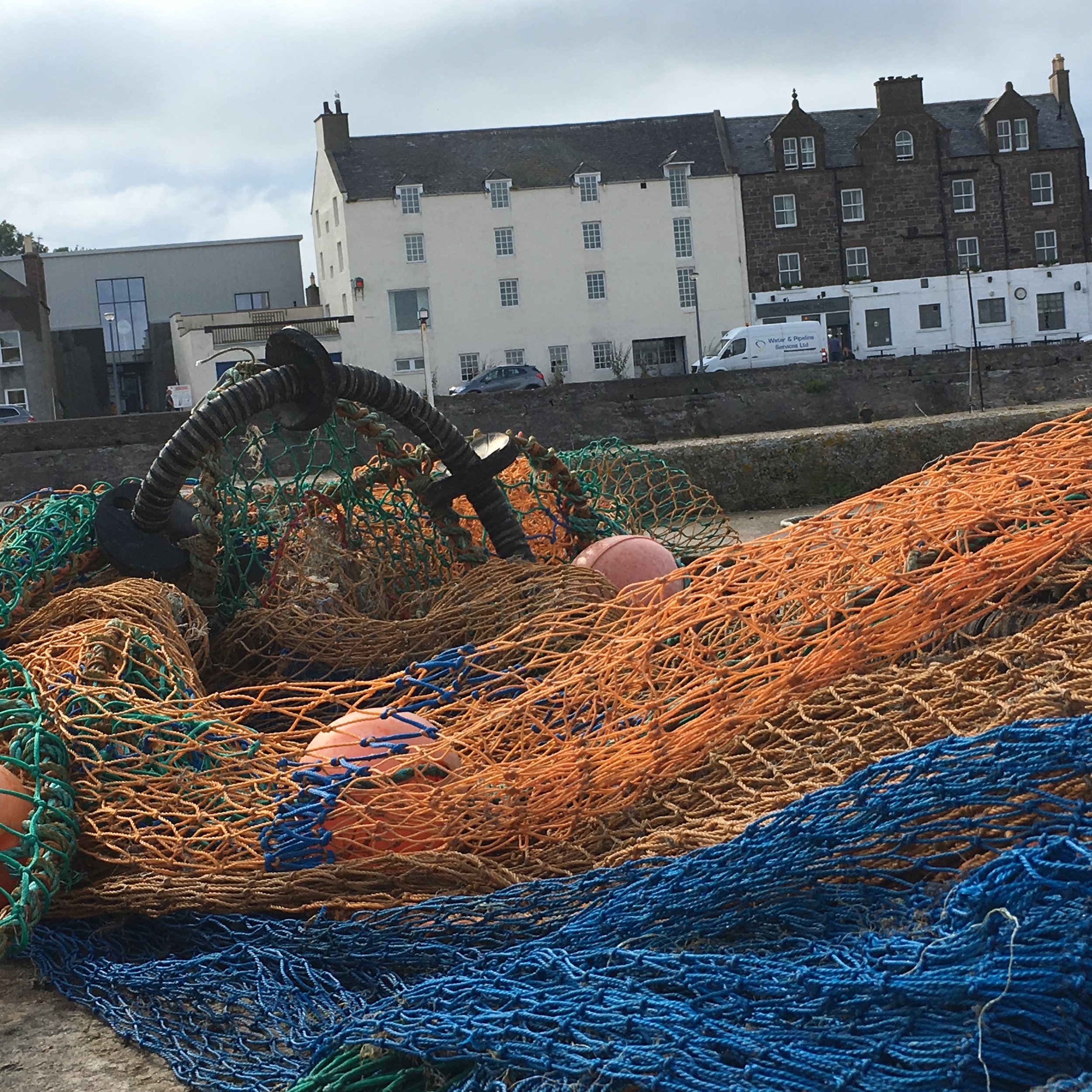 I love how this image below of netting at Stonehaven Harbour shows texture, movement and contrasting colours, even the angle of the photo connects us to the swaying motion of being on the water.
