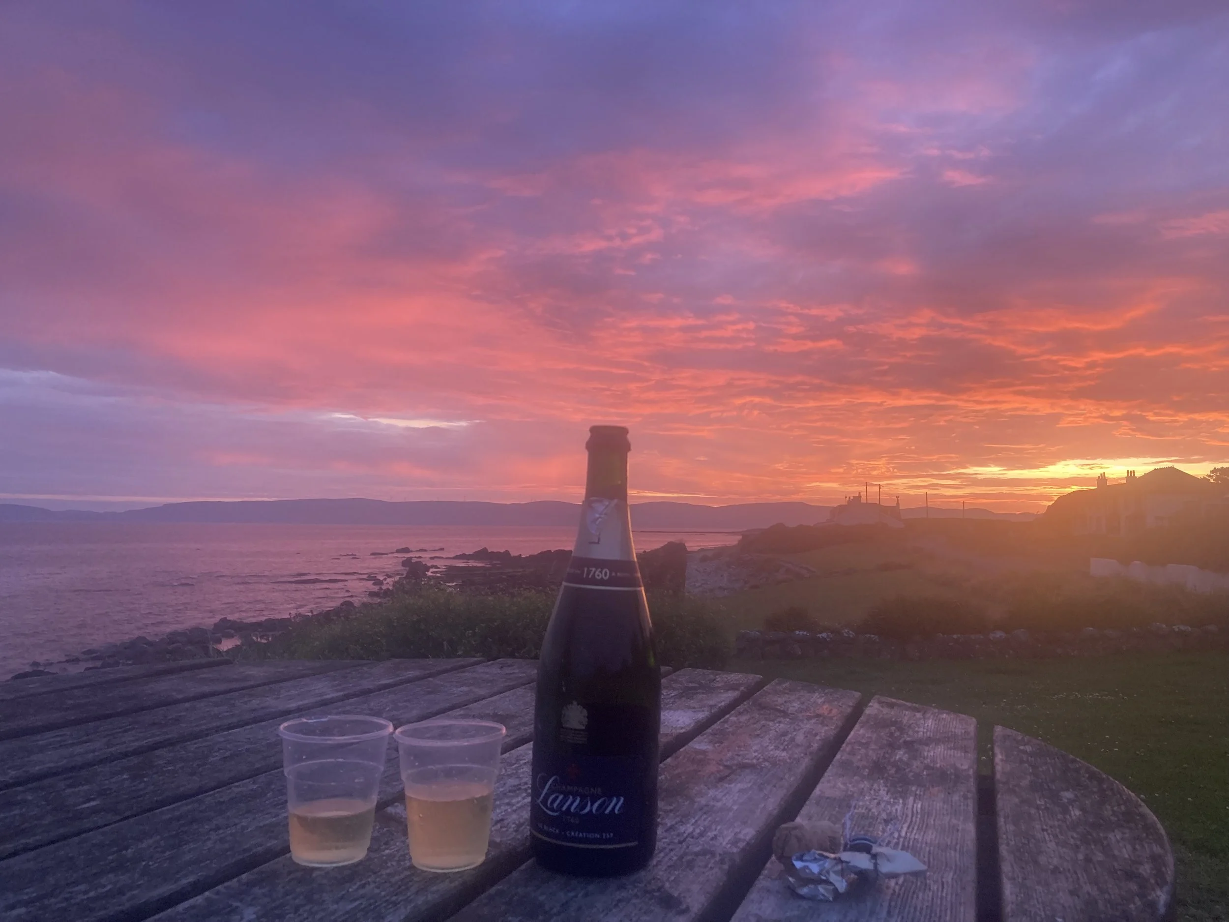 My first connection with Arran and Blackwaterfoot was in 2024; during a week in July with mostly sunny weather and fabulous sunsets. A dream I’d had of watching the sun go down while enjoying some champagne, amazingly came true!