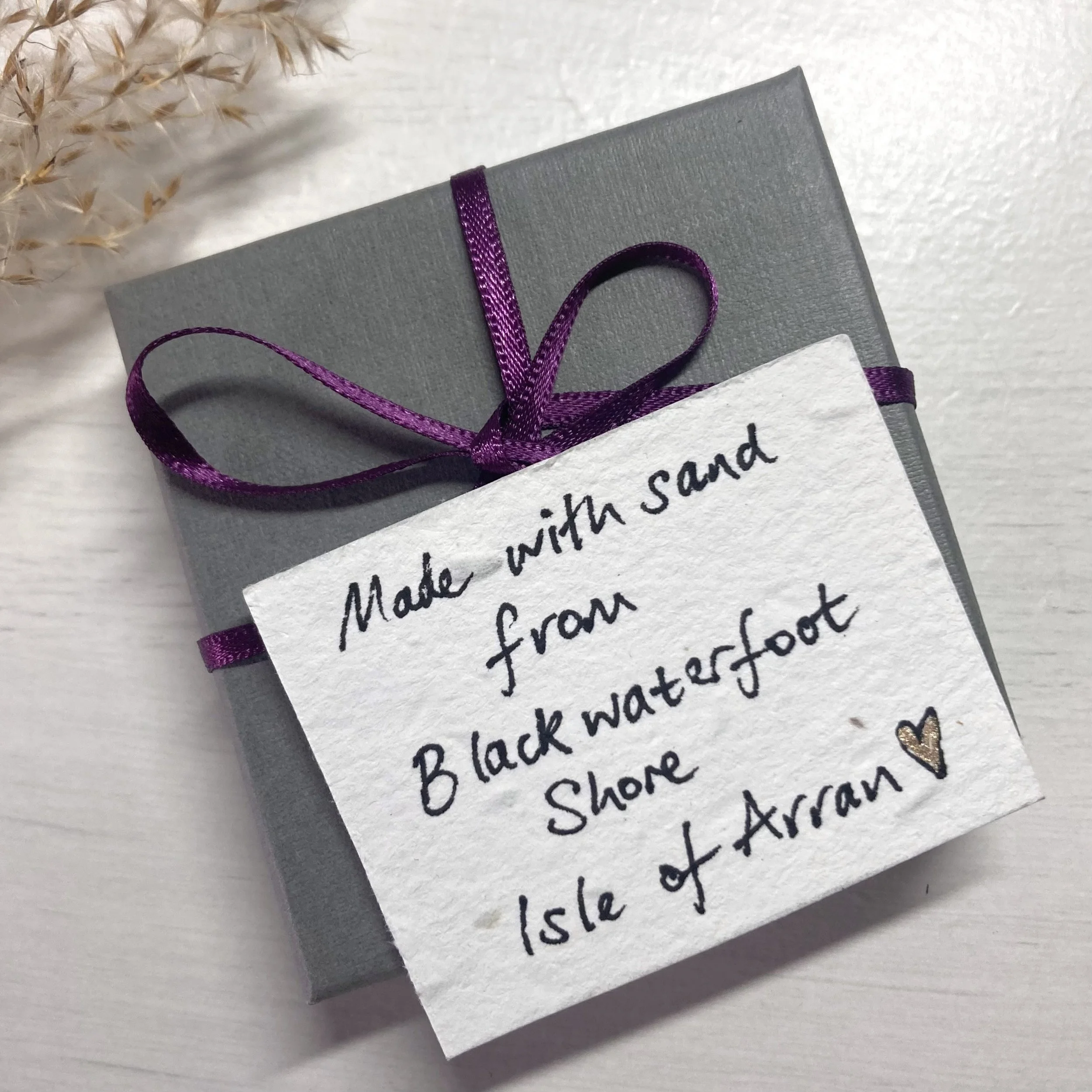 One important learning point from Christmas markets was buyers requesting a little card to describe the origins of the jewellery, so I found myself quicky writing a card to include with the gift. I’ve now made little cards to be included with every purchase. For pendants the card will be tucked inside the lovely mauve ribbon so it’s visible on the outside of the box. The cards are full of texture too; handmade paper containing plantable seeds - either a keepsake or a way of growing something else from your gift.