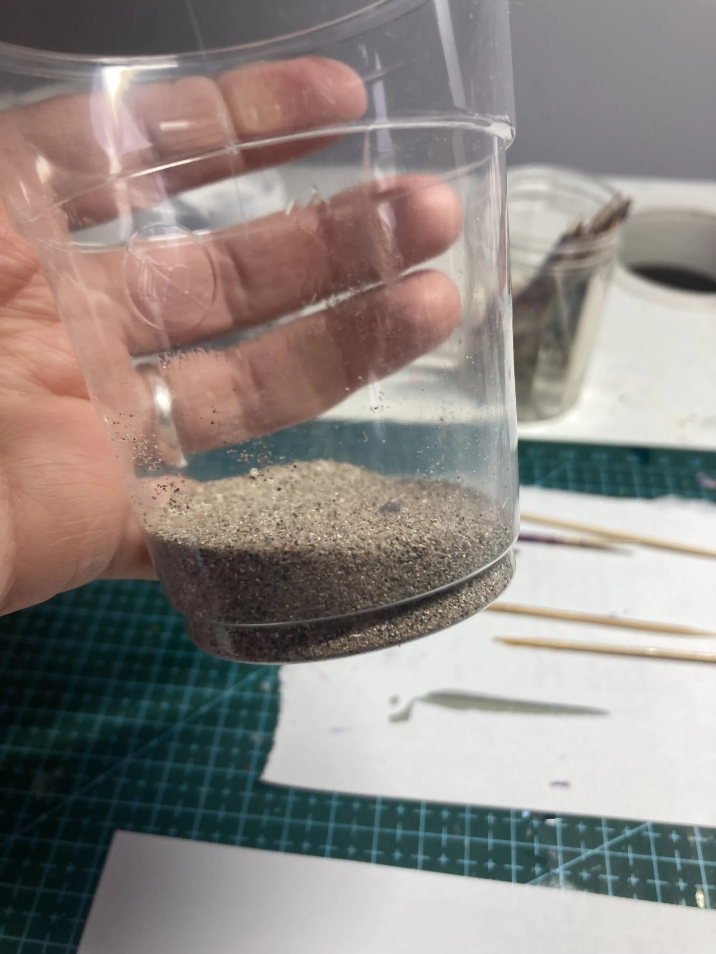 So how is it made? watch this image sequence here to see the stages; I learned early on that the sand needed to be applied to a band of paint first with time to settle, so you can see how the paint is applied in stages: